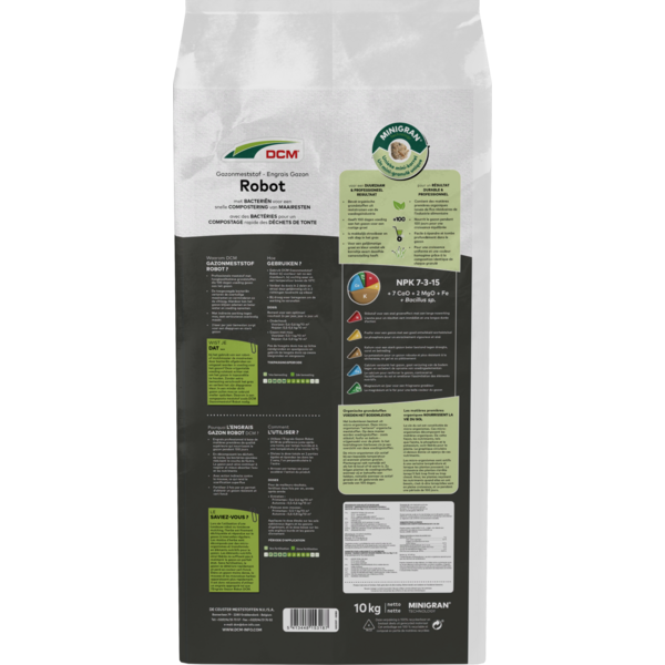 - Speciaal ontwikkeld voor gazons met een robot- of mulchmaaier, met een werking van 100 dagen.